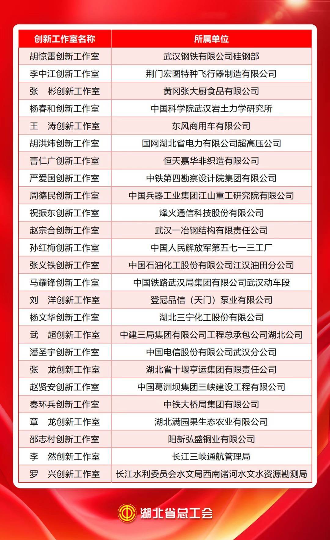 劳模工匠创新工作室是劳模工匠引领职工创新的重要实践平台,此次入选的25家工作室覆盖广泛,紧密围绕湖北打造现代化产业体系、推动新质生产力发展部署,聚焦高端装备、智能制造、光电子信息、新材料、新能源等重点领域及关键核心技术开展攻关。